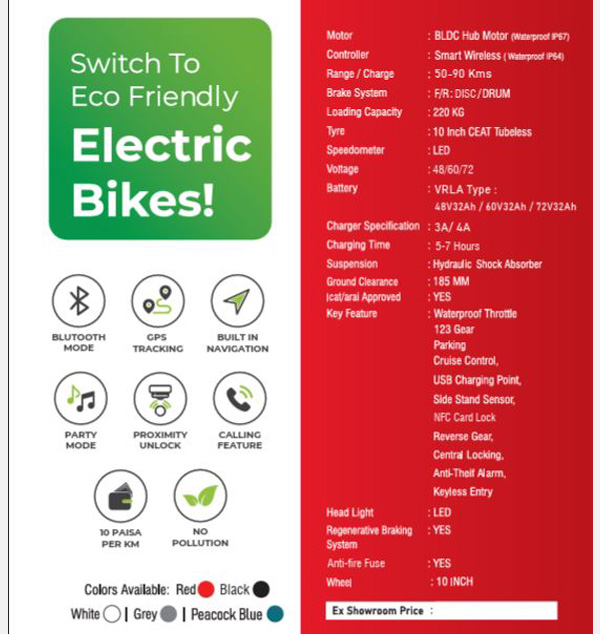 Electric Motor Bike Keep You Active And Ahead! Electric Motor Bikes are unarguably become the talk of the town over the past decades. #BreakTheMonotony and redefine your transportation with our modern age Electronic Bike. These are made with utmost care and attention to detail using cutting-edge technology and high-grade components that help you hit the roads safely, smartly and in style.