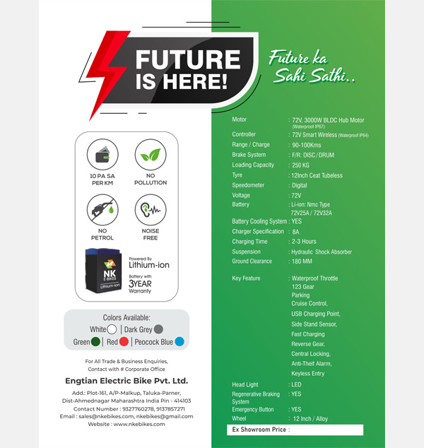First Electric Bike Manufacturers Nk E Bikes is one of the First Electric Bike Manufacturers In Ahmednagar, Maharashtra. Offered First Electric Bike comes with outstanding advantages that keep it ahead of traditional options.