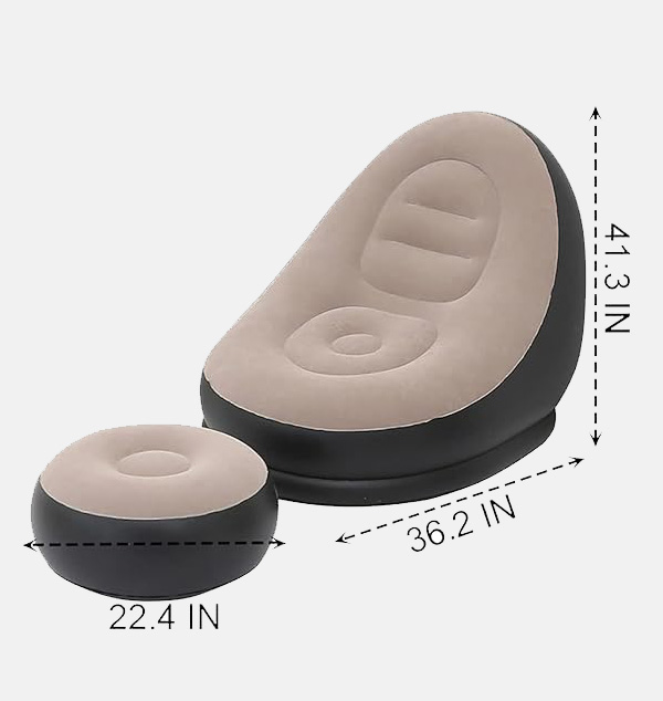 Ideal inflatable air sofa chair for indoor and outdoor. You could rest on it at many places such as living room, bedroom, balcony, garden, outdoor yard, camping. This air sofa inflatable couch is made of high quality flock on the top surface and thick PVC material on the bottom, 100% safe and eco-friendly, more durable to use and not easy to get punctured. The design is ergonomic and supports your body at the most comfortable angle. It is most suitable for leisure, gaming, nap, sleeping, reading, tanning, even you can enjoy outdoor movie in yard.
