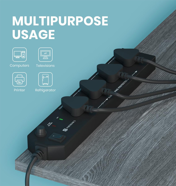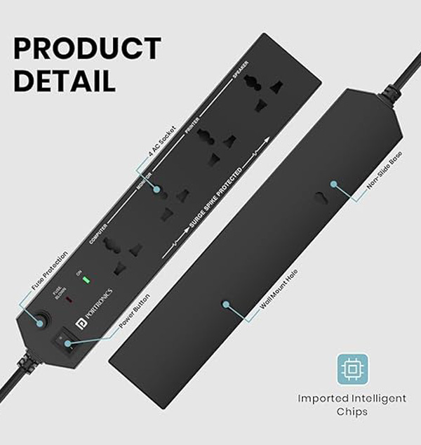 4 UNIVERSAL POWER SOCKETS: The Power Plate 10 extension board has 4 separate power sockets for efficient multi-tasking. The power board ensures that equal power is distributed throughout the plugged in 6 Amp devices. 3 METER LONG CORD: Power Plate 10 comes accompanied with a durable extension cord length of 3 meters (or 10 feet). This length ensures the apt mobility and gives freedom to the user to make most use of the power board! INTELLIGENT CHIPSET: Pre-fed with cutting-edge chipsets ensures that the power board is extremely stealthy and efficient. It has the latest power conversion tech that makes it a necessary tool in everyday gadgets!