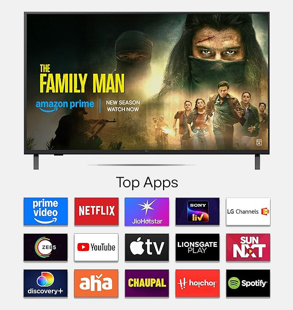 | Special Features | webOS| HDR-10 | Wide Color Gamut | Supported Applications : Sony Liv, Jio Hotstar, Zee5, Youtube |