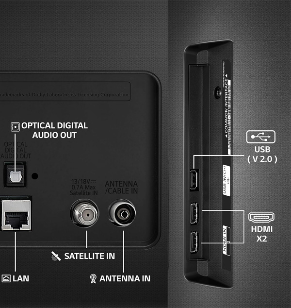 Connectivity: 2 HDMI ports to connect set top box, Blu Ray players, gaming console | 1 USB port to connect hard drives and other USB devices | Bluetooth Connectivity