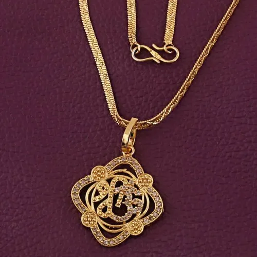 This Om Shree Pendant Rhodhium Polished Zircon Studded Casting Made Golde, showcases a unique design combining the Om and Shree. Featuring openwork.