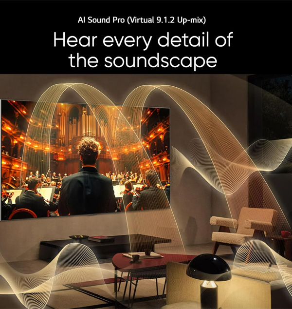 Resolution: 4K Ultra HD | Refresh Rate: 60 Hz Native| 178-degree wide viewing angle. Sound: 20 Watts Output | AI Sound Pro (Virtual 9.1.2 Up-mix) | Dolby Atmos | Clear Voice Pro (Auto Volume Leveling) | AI Acoustic Tuning | Sound Sync | Bluetooth Surround Ready (2 Way Playback) | WOW Orchestra| Down Firing Speakers