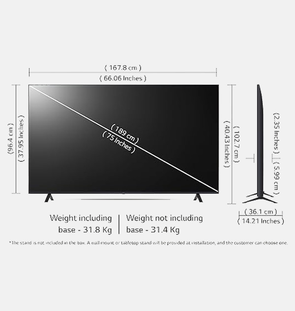 Standing screen display size | 75 Inches |