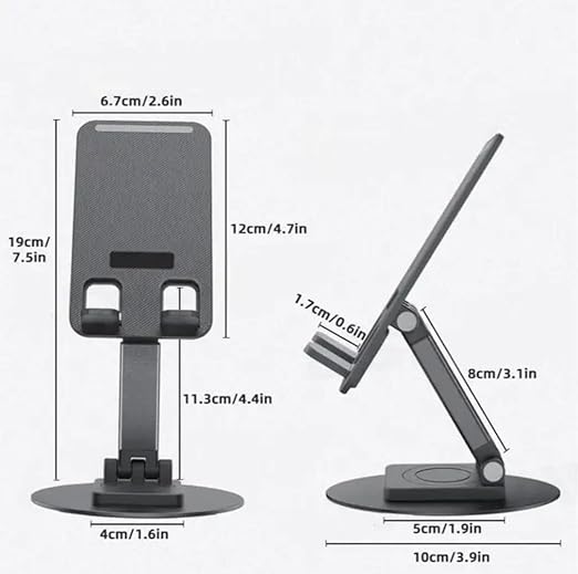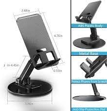Cell Phone Stand 360 Rotation Height Adjustable Phone Holder for Desk Thick case Foldable Portable Metal Base Stand Compatible with All Mobiles & Tablets