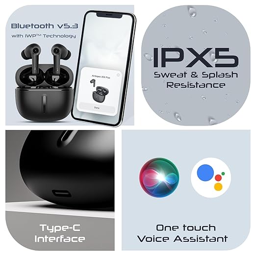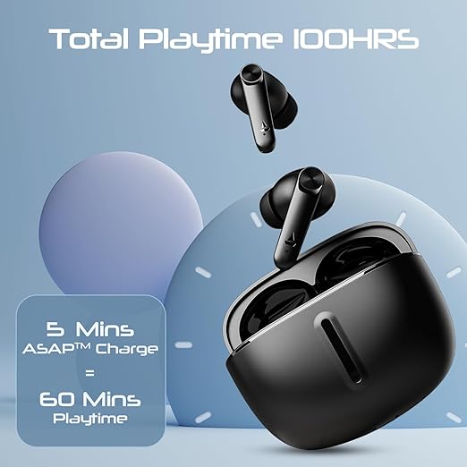 Play the music of your choice endlessly with the boAt Airdopes 200 Plus TWS Earbuds. Its playback time of up to 100 hours adds a dose of sound to your hustle. Additionally, IWP functionality pairs up in no time at all for instant fun. With top-notch 13 mm dual drivers pumping out boAt Signature sound, these earbuds lend an out-of-the-world listening experience. Engage in thrilling action scenes and tap your feet to punchy bass with max feel. ASAPTM charging gives you never-ending fun with up to 60 minutes of performance when charged for only 5 minutes. You can even stroll busy streets without missing a beat as the ENx powered quad mics suppress background noise. Elevate your gaming setup with the 50 ms low latency of Airdopes 200 Plus. BEAST mode syncs dynamic sound with captivating visuals for adrenaline-charged sessions. By warding off sweat and water splashes, the IPX5 resistance of these earbuds offers unmatched ease for intensive workouts. So, flaunt your Airdopes while you sweat it out at the gym. Furthermore, embrace hands-free comfort as Airdopes 200 Plus activates your voice assistant with just one tap. Tune into the true wireless experience with max control!