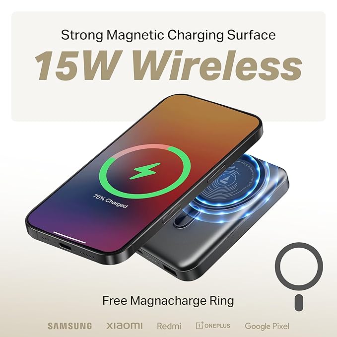 Boat EnergyShroom PB331 (Magsafe) 10000mAh Magnetic Wireless Powerbank, 15W Wireless & 22.5W Wired Charging for (iPhone 16, 15, 14, 13 & 12, Android & Other Qi Enabled Devices)