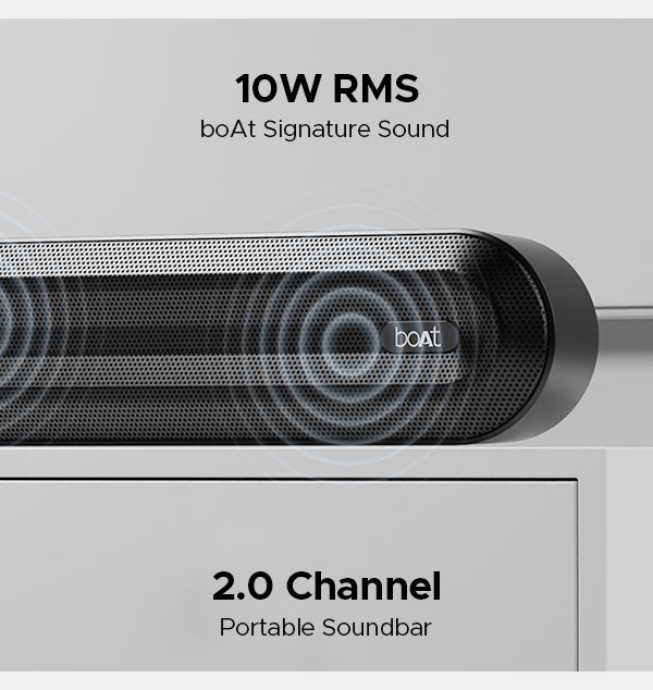 boAt Aavante Bar Aspire Bluetooth Soundbar with 10W RMS Signature Sound, 2.0 Channel with 7 Hours Playback, TWS Feature