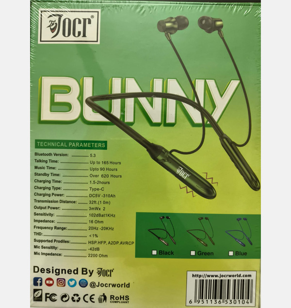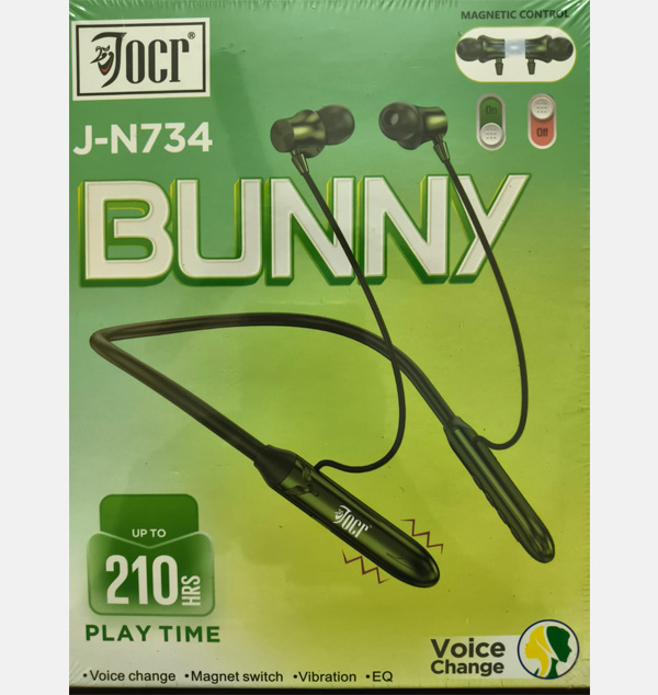 Joor Bunny J-N734 wireless neckband earphones. This model offers significantly improved battery performance and more advanced features