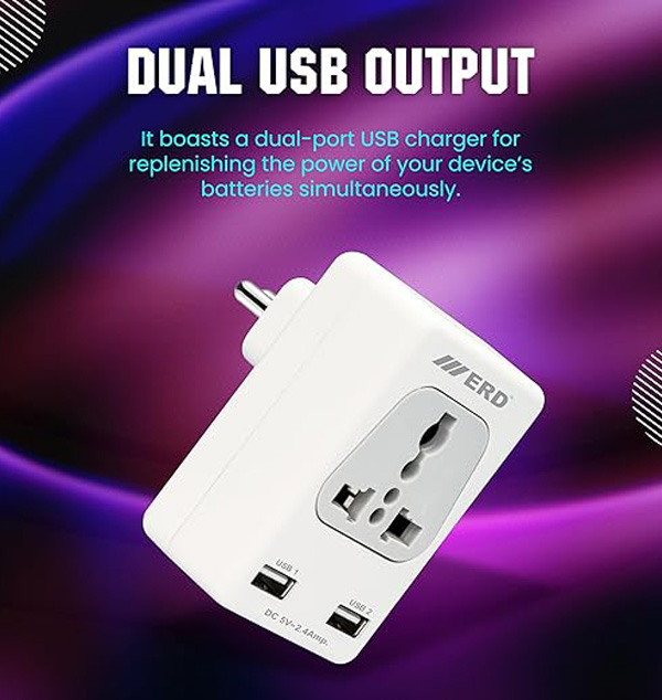 ERD EB-12 6Amp Wall Multiplug Power Socket Adapter with 2.4 Amp USB Charging Port | Extension Socket for Home Appliances