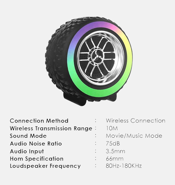 MZ Turbo Blast Wireless Speaker - High-Performance Portable Bluetooth Audio with Tire Design, Deep Bass, and 360-Degree Sound - Auto Series (RGB Light)