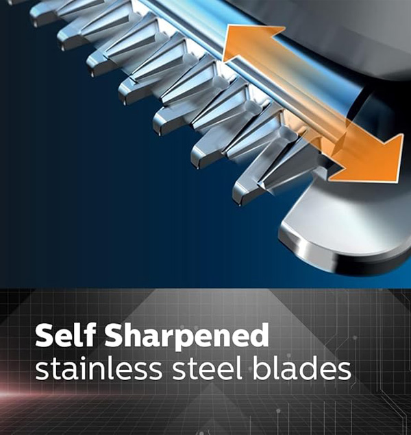 Long lasting performance due to DuraPower technology .Up to 60 minutes of cordless power after 6 hours of charging. Skin-friendly rounded tips for smooth trimming lock-in length settings, 1 - 3 - 7-11 mm with 0.5 mm precision. Self-sharpening stainless steel blades. The worldwide voltage is 100 - 240 volts The product should be charged for uninterrupted 6 Hours before initial use. This product is not suitable for direct plug and use.